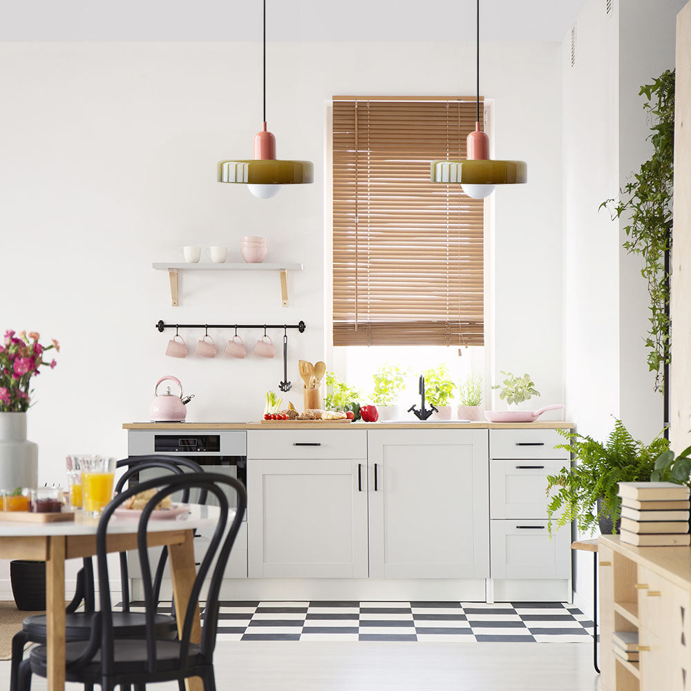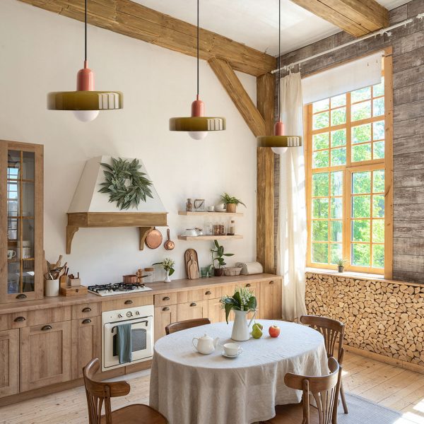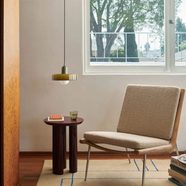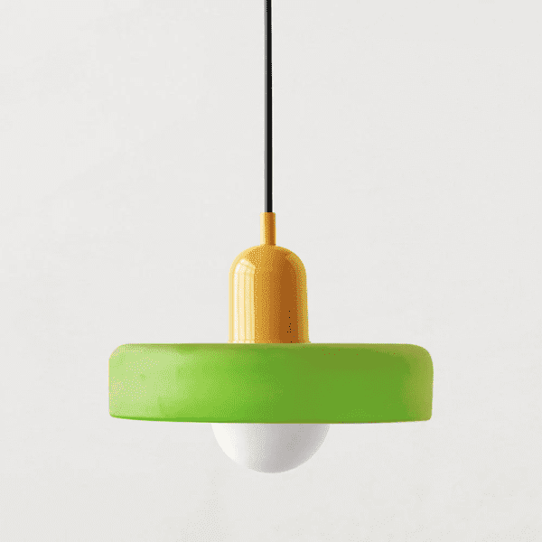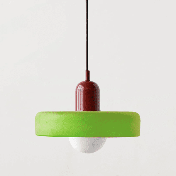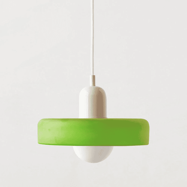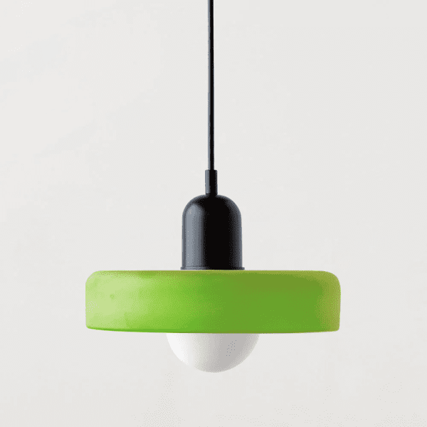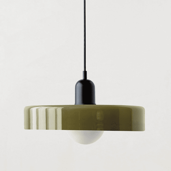 This Bauhaus Pendant Lamp has soft playful forms & provides direct lighting. Made from a glass material consisting of tiny strands that make up a modern and beautiful structure. This pendant light has a round disc look to it that would make it a great addition to any space!